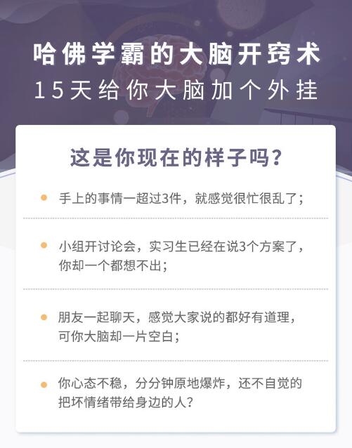 生活中每一个问题,都有一个心智的解决方案!《哈佛心智训练》课程将帮助你把潜能发挥到极致,