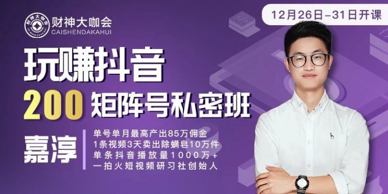 财神大咖会-嘉淳:玩转抖音,200矩阵号私密班(原价1980)