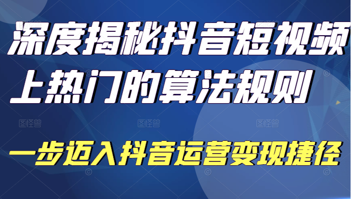 深度揭秘抖音短视频上热门的算法规则,让你快人一步迈入抖音运营变现捷径