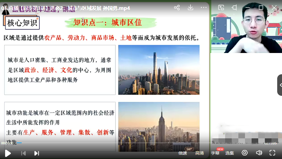 01.直播【同步第1讲】选必2:城市与区域发展 孙国勇.mp4