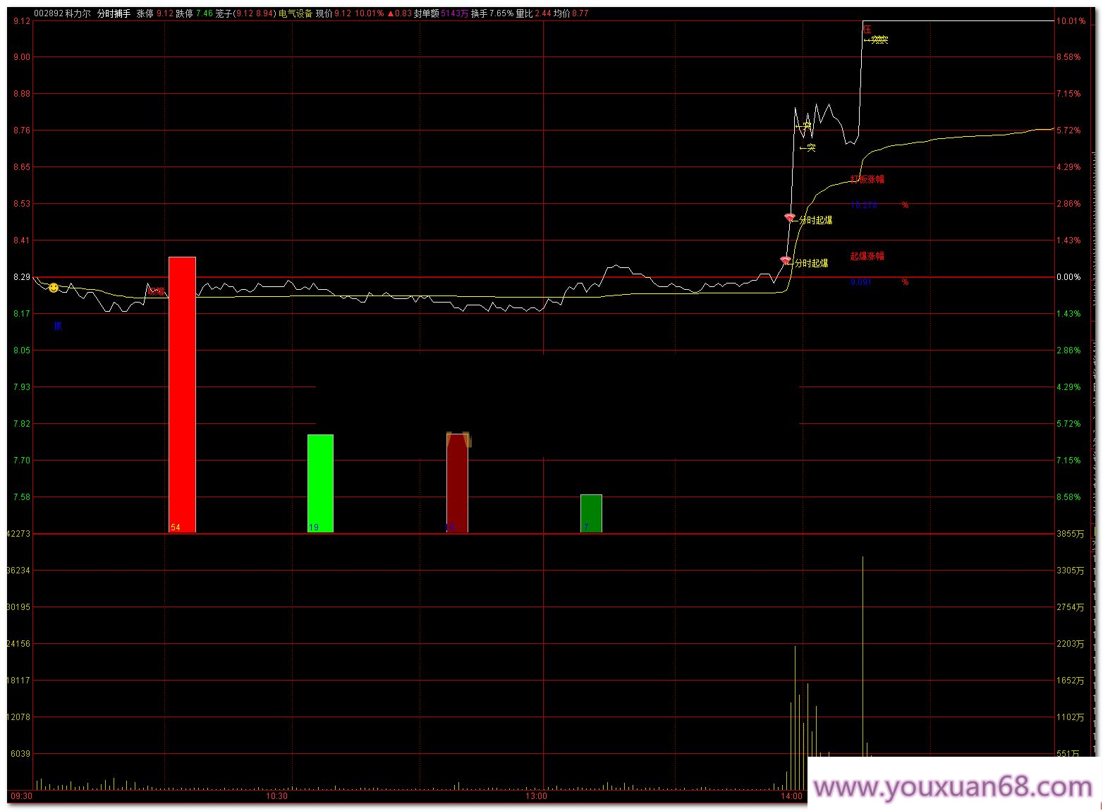 “突”信号:持续买入的标志:当主力持续性买入、资金不断涌入时,系统将通过“突”信号提醒你,这是一个强烈的买入时机,意味着市场有进一步拉升的潜力。