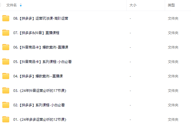 主要内容包括:选品、运营、基础、付费推广、爆款案例、活动策划、最新打法获取流量等。