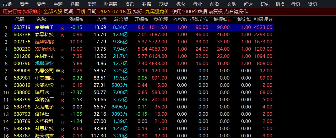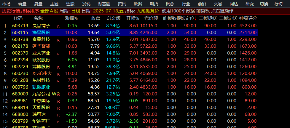 九尾狐竞价擒龙排序是一款早盘排序系统,排序主要以捉妖定位为主,排序第一名,我们要重点关注,出票可以竞价挂单或开盘买入,第二天冲高溢价卖出。